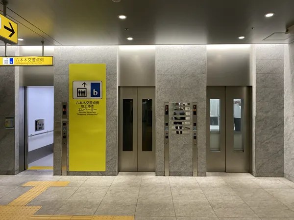 六本木駅の改札から地上に出るには、3台あるエレベーターのどれでも利用できます。